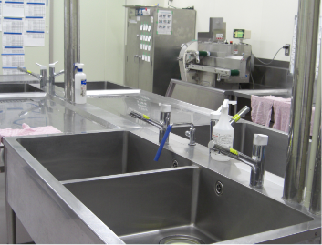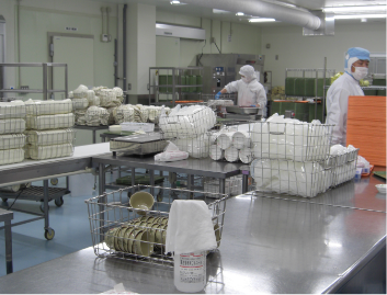 15℃程度の低温環境にて盛付配膳を行います。
