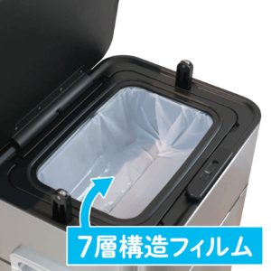 HOALU本体に専用のロールフィルムをセットして使用することで、通常のゴミ袋よりもニオイ漏れを防ぐ構造になっています。